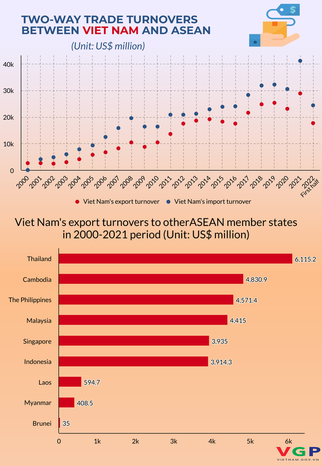 The trade volume between Viet Nam and other ASEAN member States significantly jumped to US$60 billion in 2021 from nearly US$6 billion over the past decade.