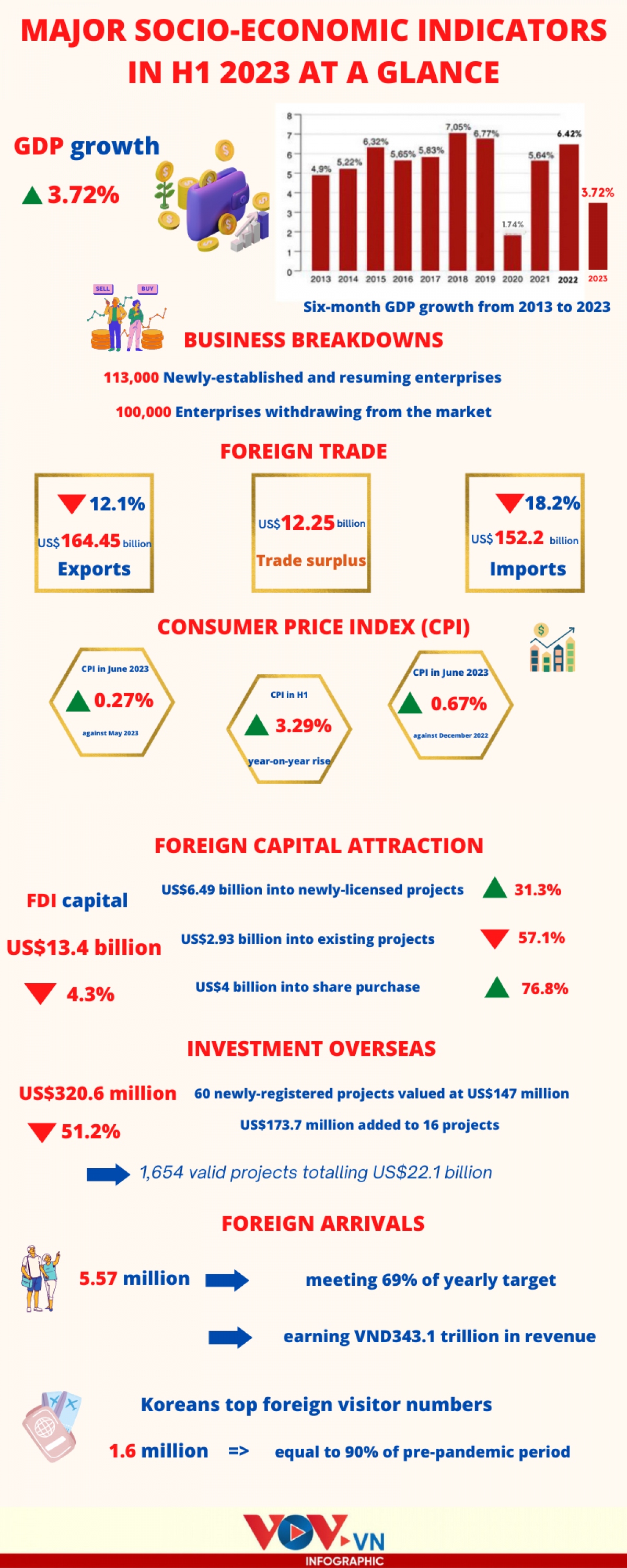 According to data released on June 29 by the General Statistics Office (GSO), the Vietnamese economy is continuing to encounter difficulties as it only expanded by an estimated 3.72% during the first six months of the year.