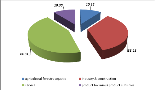 Regarding the economic structure in the first quarter of 2019, industry and construction sector makes up the largest proportion with 44.04%.