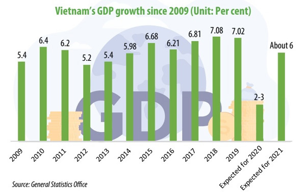 Latest government figures show that in 2020 under existing calculations, if the economy grows 2-3 per cent as expected, its GDP is estimated to be about VND6.3 quadrillion ($273.9 billion), up by VND263 trillion ($11.43 billion) against 2019, lower than the on-year increase of nearly VND500 trillion ($21.74 billion) last year.