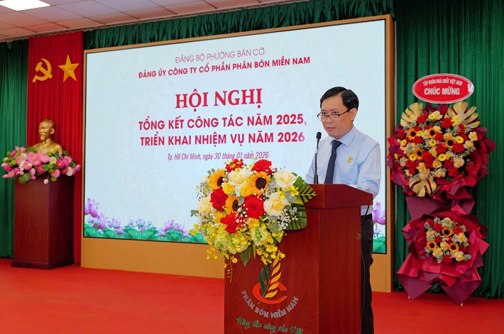 Ngày 30/1, Đảng ủy Công ty CP Phân bón Miền Nam tổ chức Hội nghị tổng kết năm 2025 và triển khai nhiệm vụ năm 2026 với tinh thần Đoàn kết, kỷ cương, đổi mới, quyết tâm hoàn thành nhiệm vụ năm 2026.