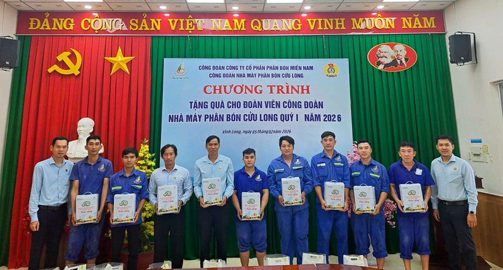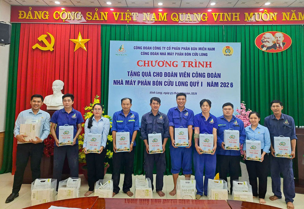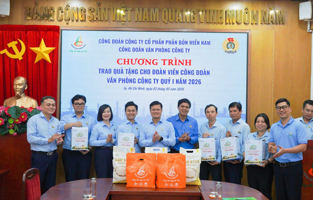 Tiếp tục những hoạt động chăm lo thiết thực cho người lao động, mới đây Công đoàn Công ty Cổ phần Phân bón Miền Nam đã tổ chức trao quà cho cán bộ, công nhân viên và người lao động trong dịp đầu Quý I/2026, trước thềm Xuân Bính Ngọ. Đây là hoạt động quen thuộc được duy trì nhiều năm nay, như một lời động viên kịp thời để người lao động thêm yên tâm làm việc, gắn bó với doanh nghiệp ngay từ những ngày đầu năm.