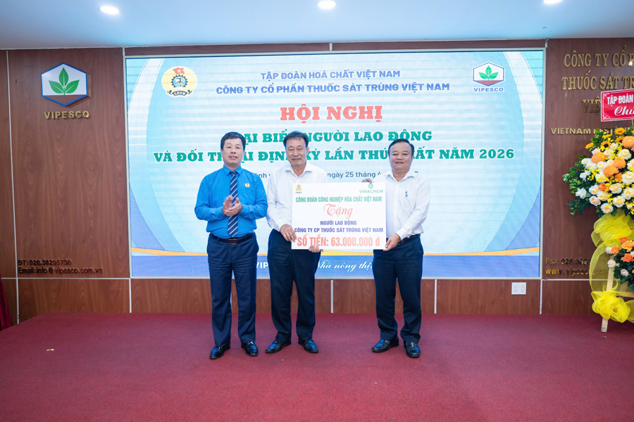 Ngày 25/4/2026, tại TP. Hồ Chí Minh, Công ty Cổ phần Thuốc sát trùng Việt Nam (VIPESCO) đã tổ chức thành công Hội nghị Đại biểu Người lao động và Đối thoại định kỳ lần thứ nhất năm 2026. Hội nghị diễn ra trong không khí phấn khởi, đoàn kết, ghi nhận những kết quả nổi bật trong sản xuất kinh doanh năm 2025, đồng thời thảo luận và thống nhất nhiều giải pháp quan trọng nhằm tiếp tục nâng cao đời sống người lao động và hướng tới mục tiêu tăng trưởng mạnh mẽ trong năm 2026.