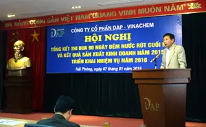 Ngày 07/01/2016 Công ty Cổ phần DAP-Vinachem đã tổ chức Hội nghị tổng kết thi đua 90 ngày đêm nước rút cuối năm 2015, kết quả sản xuất kinh doanh năm 2015 và triển khai nhiệm vụ năm 2016. Về dự chỉ đạo hội nghị có đồng chí Vũ Tiến Dũng - Chủ tịch Công đoàn Công nghiệp Hóa chất Việt Nam, Phó Chủ tịch Hội đồng thi đua Tập đoàn và đại diện các Ban của Công đoàn CNHCVN.XEM TIẾP02:09 CH @ 31/12/2015