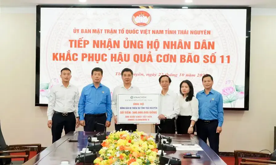 Ngày 22/10/2025, tiếp tục thực hiện kế hoạch trong chương trình ủng hộ các địa phương bị thiệt hại do bão lũ, Tập đoàn Hóa chất Việt Nam (VINACHEM) đã tổ chức các đoàn công tác đến thăm và trao tặng kinh phí, vật phẩm hỗ trợ nhân dân các tỉnh Cao Bằng và Thái Nguyên – những địa phương chịu ảnh hưởng nặng nề của bão số 10 và số 11.XEM TIẾP09:30 SA @ 22/10/2025