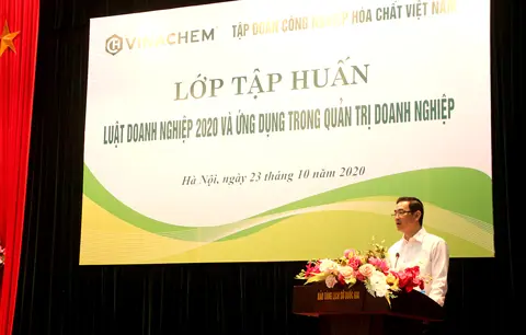 Ngày 23 tháng 10 năm 2020, tại Hà Nội, Tập đoàn Hóa chất Việt Nam đã tổ chức Lớp Tập huấn Luật doanh nghiệp năm 2020 và Ứng dụng trong Quản trị Doanh nghiệp. Tham dự lớp học có hơn 120 học viên là các đồng chí đại diện Ban Thường vụ Đảng ủy Tập đoàn, Hội đồng thành viên, Ban Tổng giám đốc, Kiểm soát viên; các đồng chí lãnh đạo các Ban tham mưu; các đồng chí lãnh đạo quản lý các đơn vị thành viên và các đồng chí đại diện phần vốn tại các doanh nghiệp.XEM TIẾP02:27 CH @ 21/10/2020
