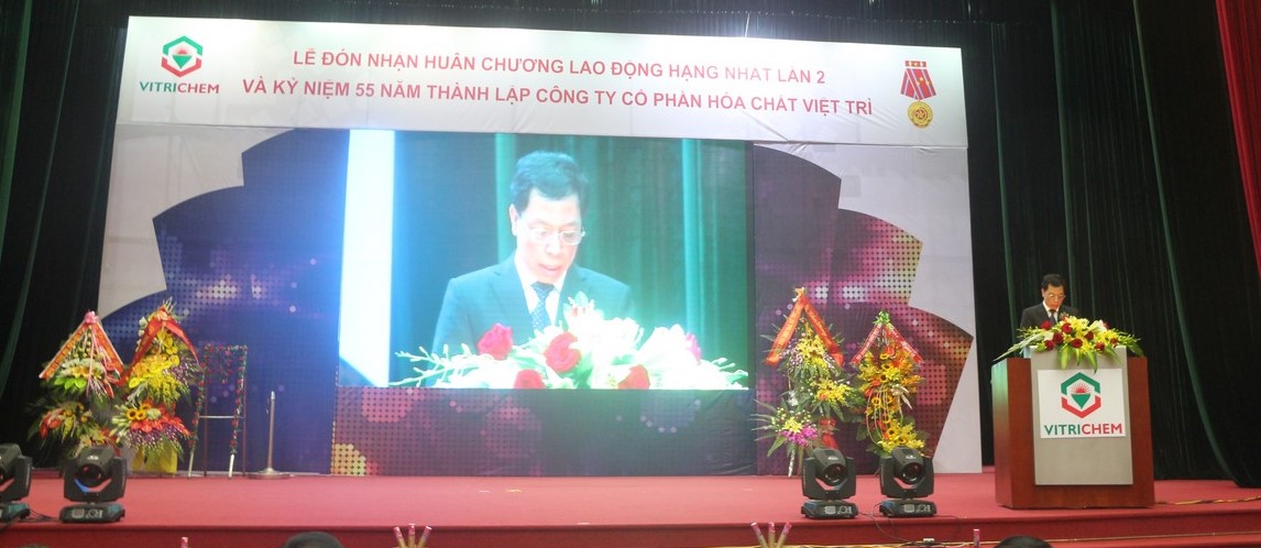 Sáng 19-5-2016, Công ty cổ phần Hóa chất Việt Trì đã tổ chức lễ kỷ niệm 55 năm Ngày thành lập và đón nhận Huân chương Lao động hạng Nhất lần thứ 2. Tới dự có các đồng chí: Bùi Văn Cường - Ủy viên BCH Trung ương Đảng, Chủ tịch Tổng Liên đoàn lao động Việt Nam; Bùi Minh Châu - Ủy viên BCH Trung ương Đảng, Phó Bí thư Tỉnh ủy, Chủ tịch UBND tỉnh Phú Thọ; Nguyễn Anh Dũng – Chủ tịch HĐTV Tập đoàn Hóa chất Việt Nam; lãnh đạo: Bộ Công thương, Bộ Lao động - Thương binh và Xã hội, Đảng ủy Khối doanh nghiệp Trung ương, Tập đoàn Hóa chất Việt Nam; đại diện lãnh đạo một số cơ quan đơn vị của Trung ương và của tỉnh Phú Thọ; các bạn hàng, đối tác cùng các thế hệ lãnh đạo và đông đảo CBCNV của Công ty.
