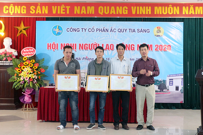 Hội nghị cũng trao những danh hiệu và phần thưởng động viên cho các tập thể, cá nhân có thành tích xuất sắc: Bằng khen của Công đoàn Công nghiệp Việt Nam; Bằng Lao động sáng tạo và Bằng khen của Công ty cho những Tập thể và cá nhan có thành tích xuất sắc trong năm 2019.