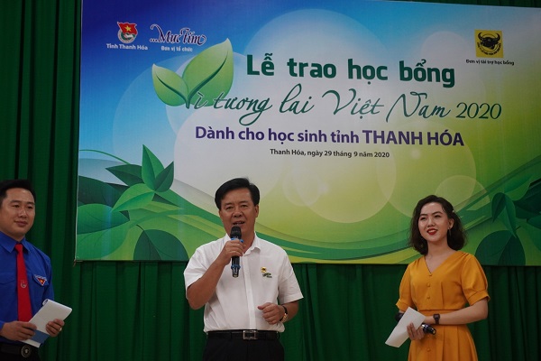 Ngày 29/9 tại Thanh Hóa, Quỹ học bổng “Vì Tương lai Việt Nam” phối hợp với Tỉnh Đoàn Thanh Hóa đã trao 50 suất học bổng cho các em học sinh vượt khó học tốt tại 2 huyện Nông Cống và Như Thanh, tỉnh Thanh Hóa với mỗi suất học bổng trị giá 2 triệu đồng do công ty CP Phân bón Bình Điền tài trợ.