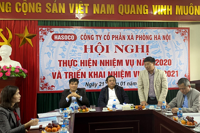Phát biểu tại hội nghị, ông Phùng Quang Hiệp, Tổng giám đốc Tập đoàn ghi nhận và biểu dương những nỗ lực cũng như kết quả mà tập thể cán bộ công nhân viên, người lao động Công ty CP Xà phòng Hà Nội đã đạt được trong năm 2020, đồng thời đề nghị Công ty với truyền thống 60 năm xây dựng và phát triển, đề nghị Công ty giữ vững và phát triển thương hiệu Hasoco; tạo việc làm và thu nhập ổn định cho người lao động; tập trung nghiên cứu, ứng dụng công nghệ để phát triển sản phẩm mới, có chất lượng tốt, ổn định và làm tốt thương hiệu cho sản phẩm; chú trọng phát triển nguồn nhân lực, đặc biệt là đội ngũ cán bộ quản lý của Công ty. Tổng giám đốc Tập đoàn nhấn mạnh nhân tố con ngườivà đoàn kết nội bộ luôn là yếu tố quan trọng cho sự phát triển lớn mạnh và bền vững của Công ty.