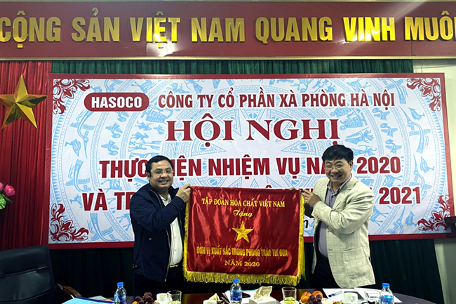 Tại hội nghị, Tổng giám đốc Phùng Quang Hiệp thay mặt Lãnh đạo Tập đoàn tặng cờ Đơn vị xuất sắc trong phong trào thi đua năm 2020 cho Công ty CP Xà phòng Hà Nội./.