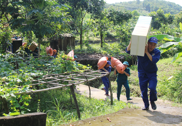 Các lực lượng sơ tán tài sản của người dân vùng hạ lưu.