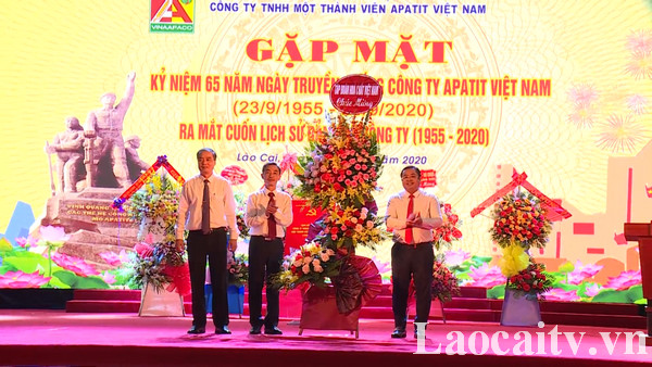 Chúc mừng thành công của Công ty Apatit Việt Nam nhân dịp 65 năm ngày truyền thống, đồng chí Phùng Quang Hiệp, Tổng Giám đốc Tập đoàn Hóa chất Việt Nam bày tỏ niềm tin tưởng trong những năm tới công ty sẽ tiếp tục khẳng định vị thế của mình, ứng dụng khoa học công nghệ vào sản xuất, phát huy sáng kiến, cải tiến kĩ thuật, đảm bảo môi trường làm việc và đời sống của người lao động.