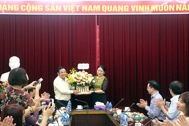 Thay mặt lãnh đạo Tập đoàn, đồng chí Phùng Quang Hiệp tặng hoa chúc mừng chị em nhân ngày 20/10, đồng thời đồng chí cũng biểu dương, dành những tình cảm chân thành và những lời chúc mừng tốt đẹp nhất tới các nữ cán bộ, viên chức, lao động trong Tập đoàn. đồng chí cũng hy vọng, trong thời gian tới, các cán bộ nữ của của cơ quan mẹ sẽ tiếp tục phát huy hơn nữa vai trò của mình trong Gia đình, Tập đoàn và Xã hội.