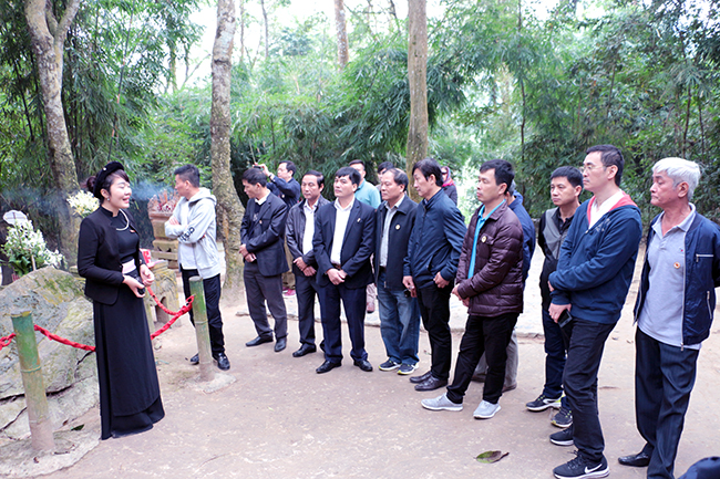 Tại Khu di tích quốc gia đặc biệt Tân Trào, cái nôi của Cách mạng Tháng Tám, đoàn đã đến thăm và dâng hương tại các địa danh: Lán Nà Nưa, đình Tân Trào, cây đa Tân Trào..., được nghe hướng dẫn viên giới thiệu, ôn lại những sự kiện quan trọng, thiêng liêng về lãnh tụ Hồ Chí Minh trong những năm tháng kháng chiến gian khổ, vinh quang.