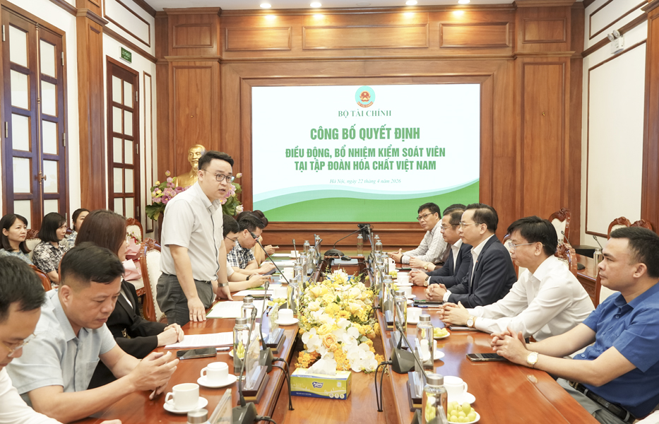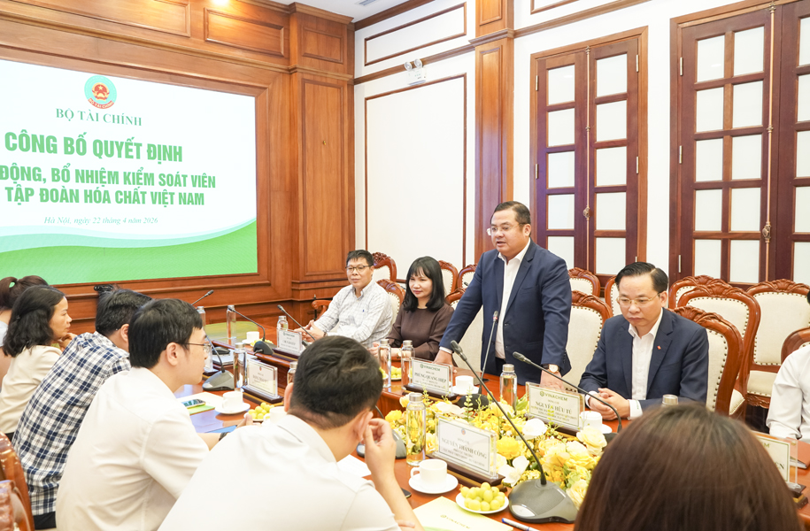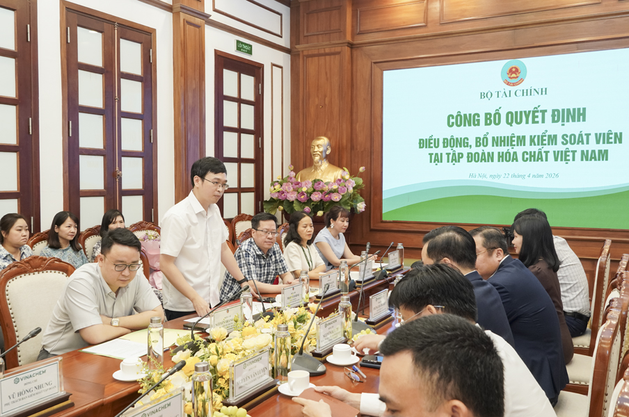 Ngày 22/4/2026, tại trụ sở Tập đoàn Hóa chất Việt Nam, Bộ Tài chính tổ chức Lễ công bố Quyết định của Bộ Tài chính về công tác cán bộ Kiểm soát viên Tập đoàn.