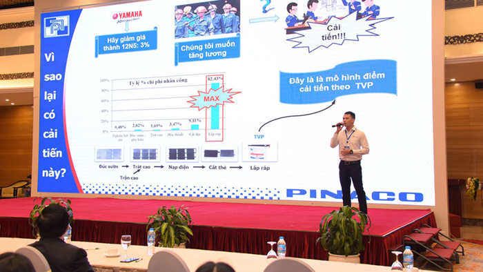 Thuyết trình trong Cuộc thi, ông Trần Mạnh Thắng - Giám đốc Xí nghiệp Ắc quy Đồng Nai, đại diện Nhóm cải tiến Năng suất vượt trội của PINACO cho biết, Nhóm cải tiến đã áp dụng phương pháp TVP - Giá trị lý thuyết của sản xuất để phân tích từng hoạt động sản xuất của dây chuyền, từ đó phát hiện nhiều thao tác sản xuất không tạo ra giá trị, nhiều điểm nút thắt cổ chai trên dây chuyền sản xuất.