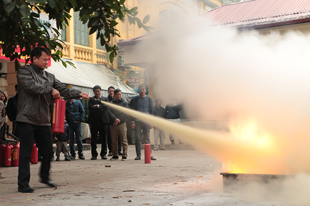 Ngay sau buổi tập huấn , CBNV Công ty mẹ - Tập đoàn Hóa chất Việt Nam được thực hành diễn tập chữa cháy dưới sự hướng dẫn của lực lượng cảnh sát Cảnh sát PCCC. Tình huống giả định được đưa ra là các đám cháy với quy mô lớn, nhỏ xảy ra tại khuôn viên Tập đoàn. Trong đó, mỗi cá nhân tham gia buổi diễn tập đều phải thực hành dập tắt đám cháy quy mô nhỏ bằng phương tiện chữa cháy là bình bột và bình khí chữa cháy xách tay.