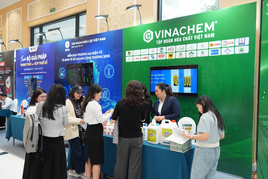 Trong khuôn khổ sự kiện, tại khu vực triển lãm công nghệ, Vinachem giới thiệu các sản phẩm tiêu biểu của các đơn vị thành viên cùng những hoạt động nổi bật trong chuyển đổi số thời gian qua. Đặc biệt, Trung tâm Thương mại và Dịch vụ Hóa chất đã triển khai giới thiệu sàn thương mại điện tử Vinachemmart, hướng dẫn khách tham quan trải nghiệm ứng dụng, đăng ký tài khoản, đặt hàng trực tuyến và tiếp cận các chương trình khuyến mãi kích cầu.