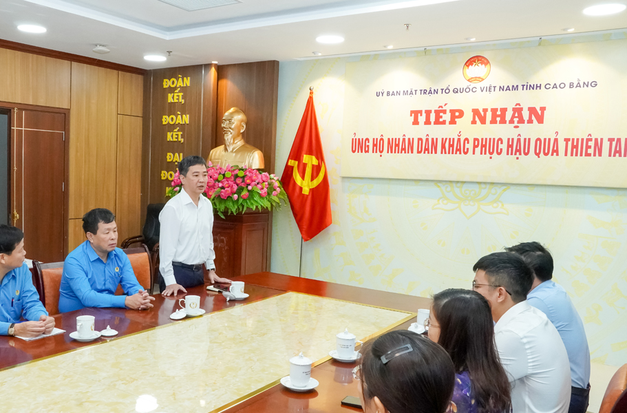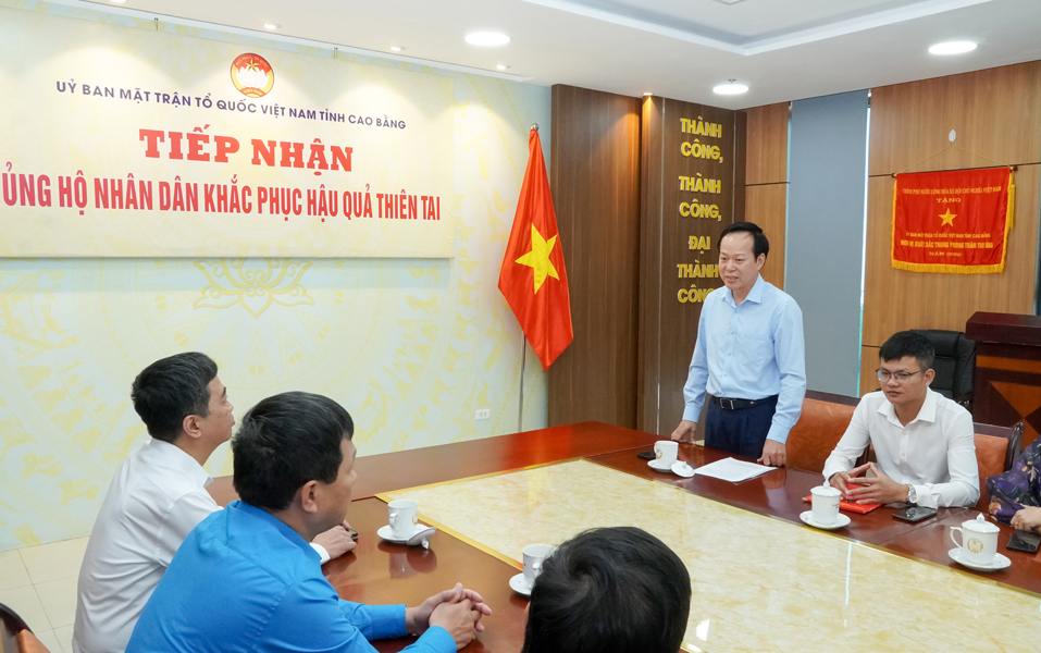 Tại Ủy ban Mặt trận Tổ quốc Việt Nam tỉnh Cao Bằng, đoàn đã trao tặng 200 triệu đồng tiền mặt, 200 kg Cloramin B và 200 suất sản phẩm tiêu dùng thiết yếu.