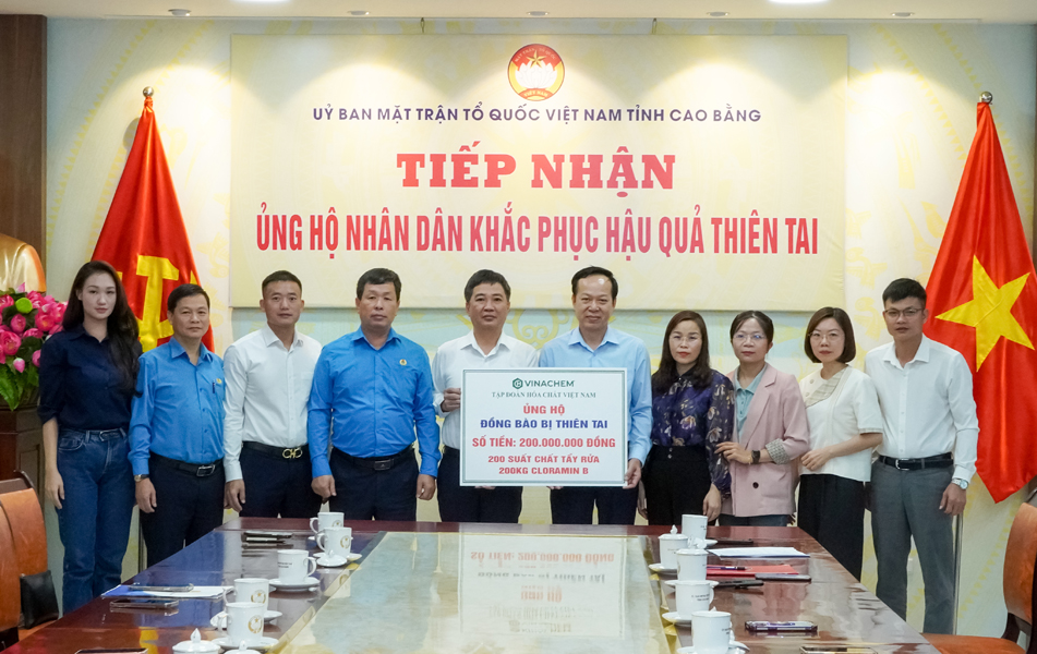Ngày 22/10/2025, tiếp tục thực hiện kế hoạch trong chương trình ủng hộ các địa phương bị thiệt hại do bão lũ, Tập đoàn Hóa chất Việt Nam (VINACHEM) đã tổ chức các đoàn công tác đến thăm và trao tặng kinh phí, vật phẩm hỗ trợ nhân dân các tỉnh Cao Bằng và Thái Nguyên – những địa phương chịu ảnh hưởng nặng nề của bão số 10 và số 11.