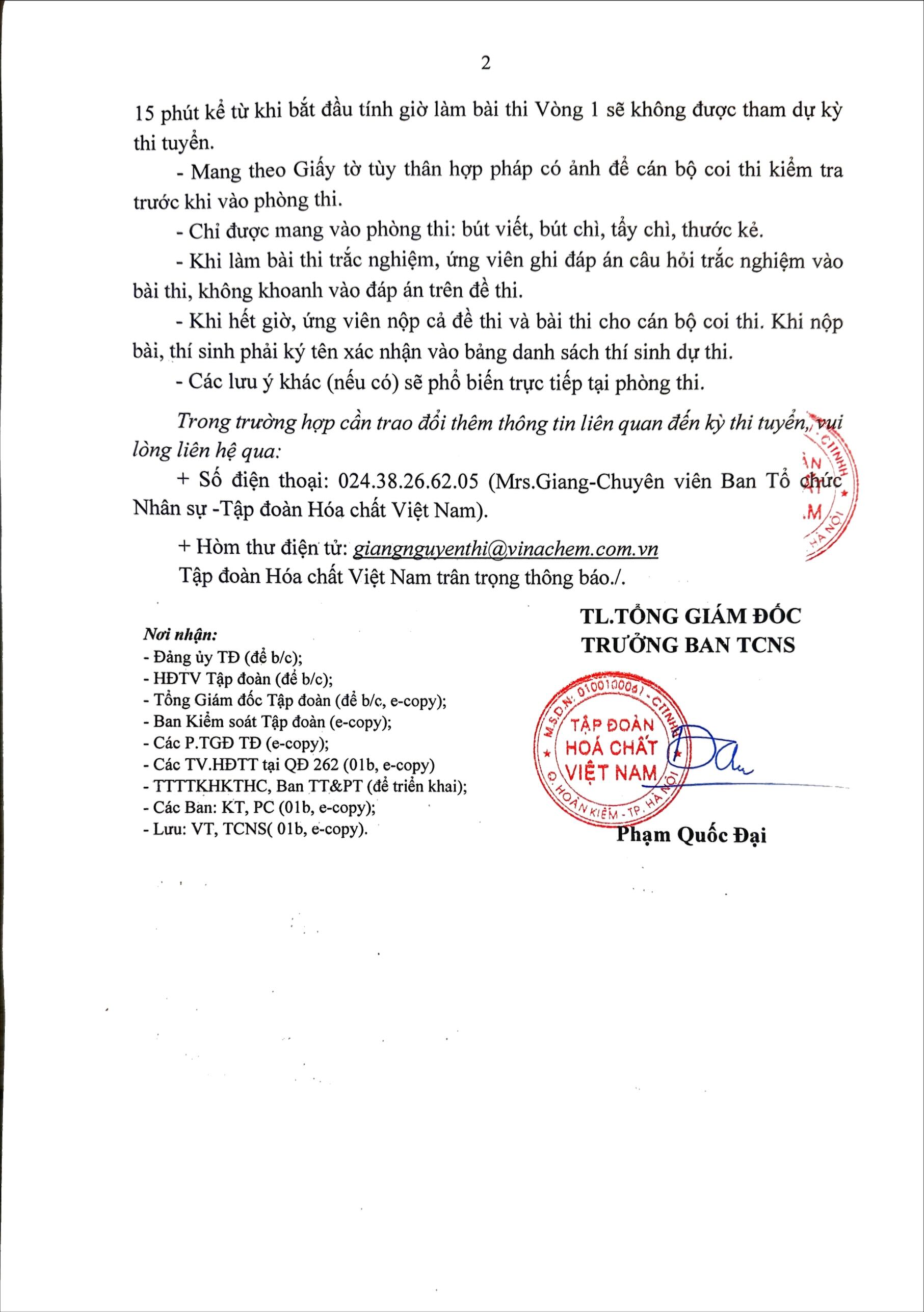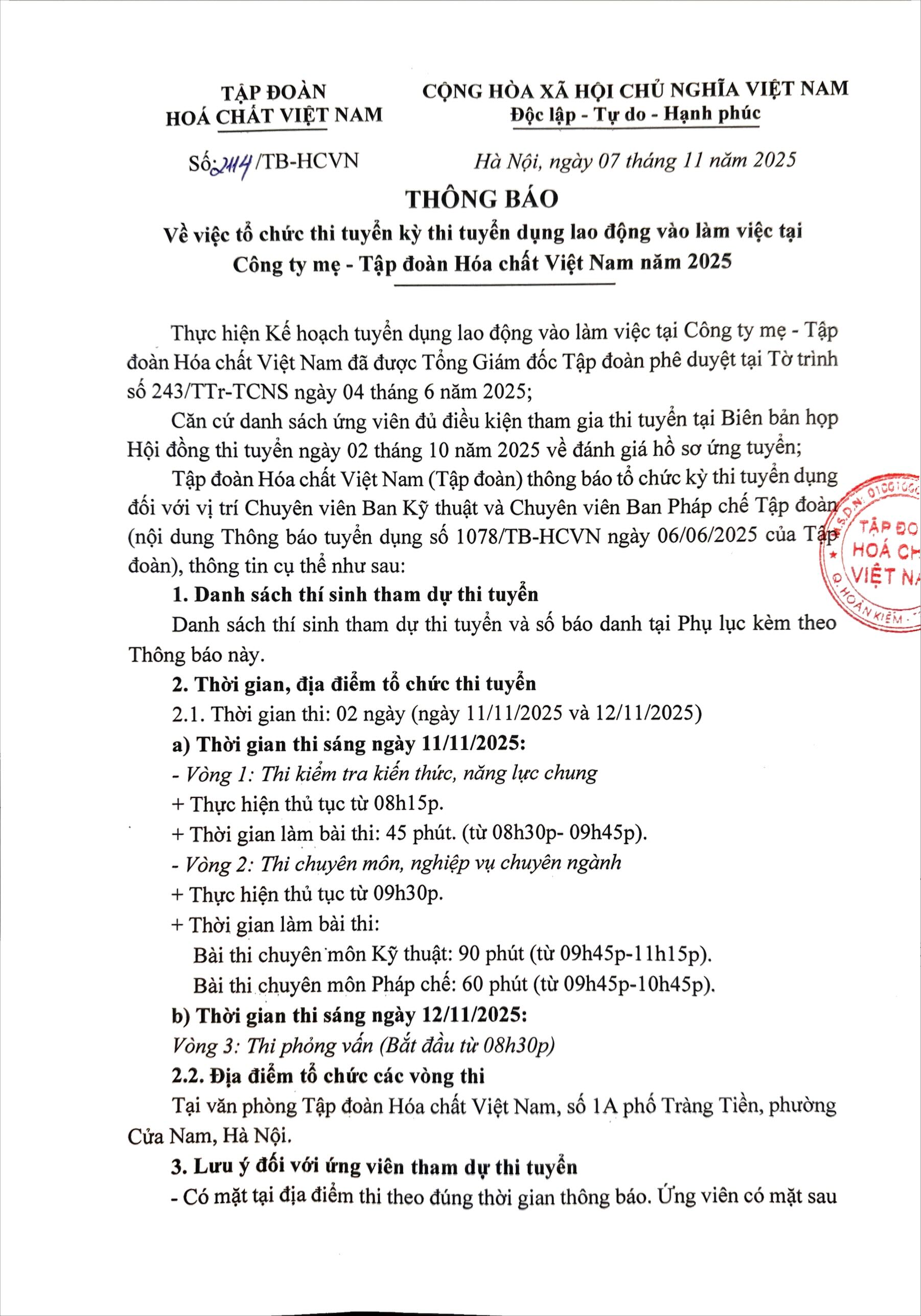 Tập đoàn Hóa chất Việt Nam tổ chức kỳ thi tuyển dụng lao động năm 2025