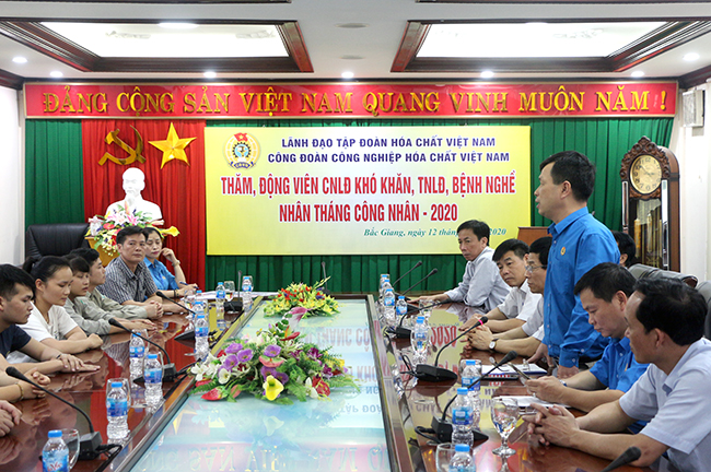 Thực hiện kế hoạch tổ chức các hoạt động an sinh xã hội năm 2020 và nhân dịp "Tháng công nhân", Lãnh đạo Tập đoàn Hóa chất Việt Nam phối hợp với Công đoàn Công nghiệp Hóa chất Việt Nam đi thăm, tặng quà CNLĐ các đơn vị gặp khó khăn trong sản xuất kinh doanh.