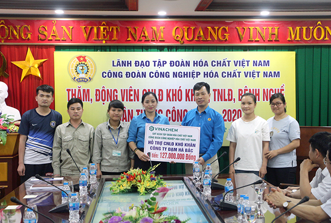 Ngày 12/5/2020, thay mặt lãnh đạo Tập đoàn, đồng chí Nguyễn Huy Thông, Chủ tịch Công đoàn Công nghiệp Hóa chất Việt Nam cùng đoàn công tác đã tới Công ty Cổ phần Phân đạm và Hóa chất Hà Bắc. Tại đây, đoàn đã thăm hỏi tình hình sản xuất kinh doanh trong thời gian qua, động viên Ban giám đốc cùng toàn thể cán bộ công nhân viên, người lao động khắc phục khó khăn do ảnh hưởng của dịch Covid-19 và trao số tiền 127 triệu cho công nhân có hoàn cảnh khó khăn tại công ty.