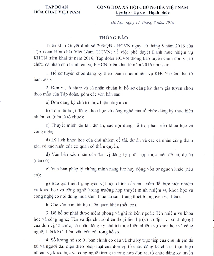1 Đơn đăng ký chủ trì nhiệm vụ KHCN cấp Tập đoàn Hóa chất Việt Nam