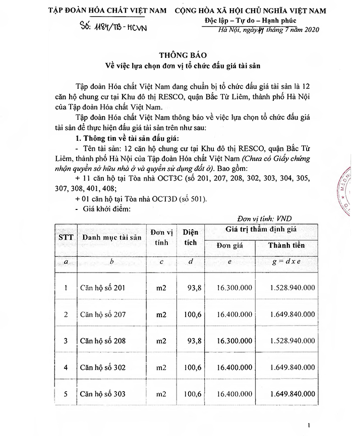 Thông báo về việc lựa chọn đơn vị tổ chức đấu giá tài sản