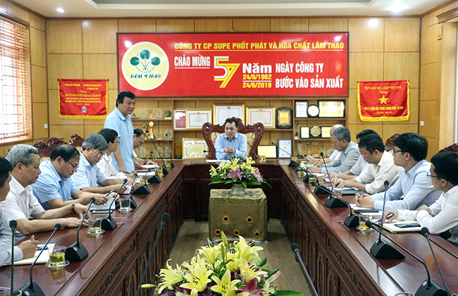 Tại Công ty Công ty CP Supe phốt phát và Hóa chất Lâm Thao, đoàn đã được nghe ông Phạm Quang Tuyến báo cáo tình hình sản xuất 7 tháng đầu năm, theo đó từ đầu năm đến nay, sản xuất và tiêu thụ phân bón gặp nhiều khó khăn. Sản phẩm nhập khẩu cũng như phân bón sản xuất trong nước cạnh tranh khốc liệt. Để giữ vững chất lượng, ổn định giá đến tay người nông dân, đảm bảo việc làm và thu nhập cho hơn 3.000 lao động, tập thể lãnh đạo Công ty CP Supe Phốt phát và Hóa chất Lâm Thao đã nỗ lực vượt qua khó khăn. Cụ thể, 7 tháng năm 2019, giá trị sản xuất công nghiệp theo giá thực tế đạt 1.864 tỷ đồng, bằng 47% so với kế hoạch năm; bằng 75% so với cùng kỳ; Doanh thu bán hàng và cung cấp dịch vụ (bán ngoài) đạt 1.635 tỷ đồng, bằng 41% so với kế hoạch năm, bằng 83% so với cùng kỳ, lợi nhuận thực hiện 6 tháng đạt 16,5 tỷ đồng.