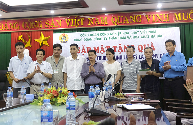 Nhân dịp này, thay mặt CBCNVC, Lãnh đạo Tập đoàn Hóa chất Việt Nam, Công đoàn Công nghiệp Hóa chất Việt Nam đã tặng quà, thăm hỏi các đồng chí thương, bệnh binh tại trung tâm điều dưỡng với tổng số tiền là gần 25 triệu đồng. Ngoài ra, Công đoàn Công Thương Việt Nam, Quỹ An sinh xã hội tập đoàn thăm và tặng quà cho 130 đồng chí là thương binh đang công tác tại các đơn vị thành viên trong Tập đoàn với tổng số tiền 130 triệu đồng./.