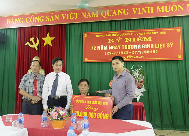 Nhân dịp kỷ niệm 72 năm ngày Thương bình Liệt sỹ (27/7/1947 - 27/7/2019). Ngày 26/7/2019, đoàn công tác của Tập đoàn Hóa chất Việt Nam do đồng chí Bùi Thế Chuyên, Phó tổng giám đốc Tập đoàn dẫn đầu đã đến thăm và tặng quà cho các đồng chí thương, bệnh binh tại Trung tâm Điều dưỡng Thương binh Duy Tiên (Hà Nam).