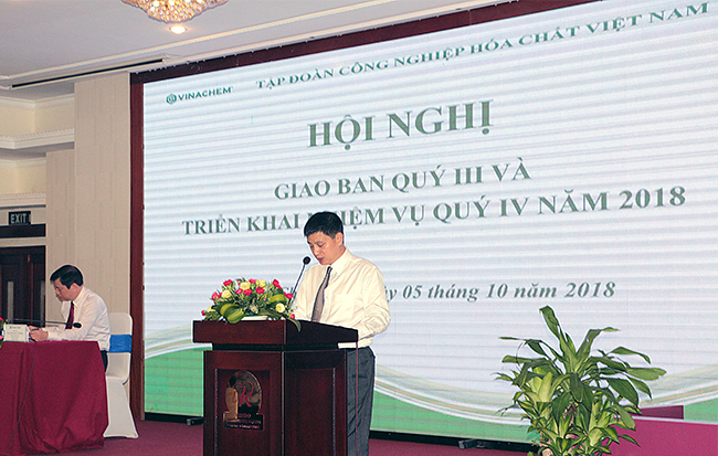 Ngày 05/10/2018, tại TP. Hồ Chí Minh, Tập đoàn Công nghiệp Hóa chất Việt Nam (Vinachem) đã tổ chức Hội nghị giao ban quý III nhằm đánh giá kết quả thực hiện 9 tháng đầu năm và triển khai nhiệm vụ quý IV năm 2018. Ông Nguyễn Gia Tường, Phó Bí thư Đảng ủy, Ủy viên HĐTV, Tổng Giám đốc Tập đoàn chủ trì Hội nghị.