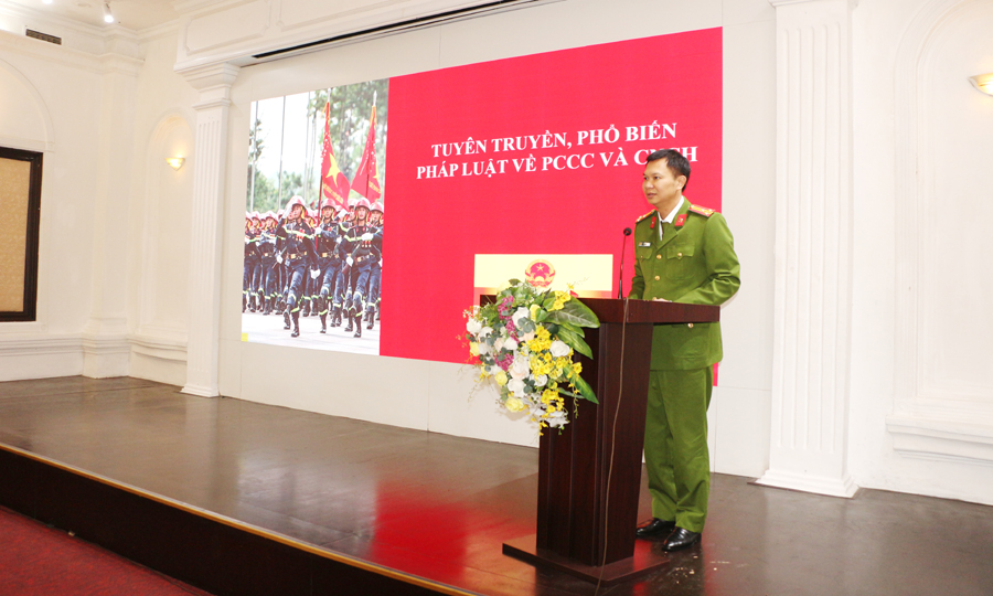 Đồng chí khẳng định mục tiêu của Hội nghị là nâng cao nhận thức và trách nhiệm của đội ngũ lãnh đạo phụ trách PCCC, giúp các đơn vị nắm rõ quy định pháp luật, từ đó tham mưu và tổ chức thực hiện đúng, đủ, kịp thời. Công tác PCCC phải được triển khai “từ sớm, từ xa, từ khi chưa xuất hiện dấu hiệu cháy”.