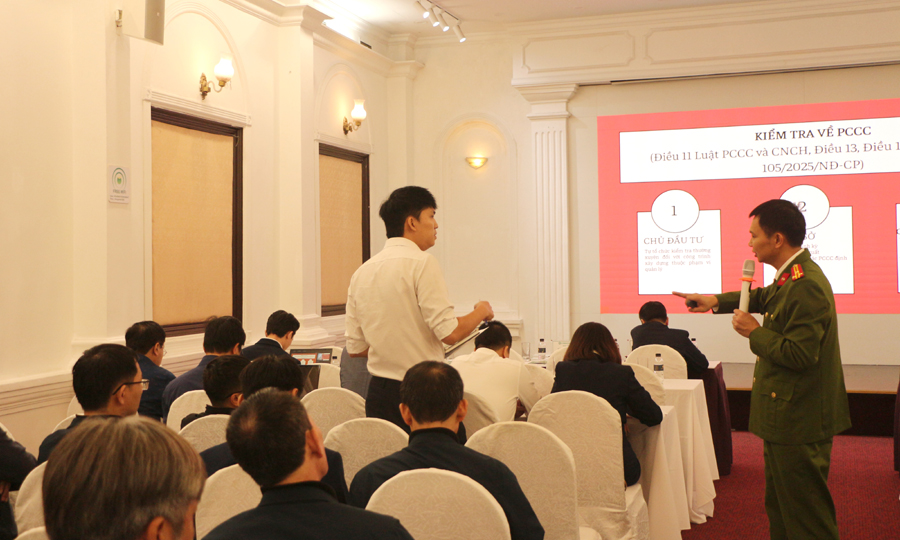 Tại Hội nghị, các chuyên gia của Cục Cảnh sát PCCC & CNCH đã giải đáp nhiều câu hỏi, vướng mắc của doanh nghiệp, đơn vị trong quá trình triển khai luật mới; đồng thời nhấn mạnh các quy định về thẩm duyệt PCCC trong dự án đầu tư xây dựng, yêu cầu về chiều cao PCCC và các tiêu chuẩn kỹ thuật liên quan.