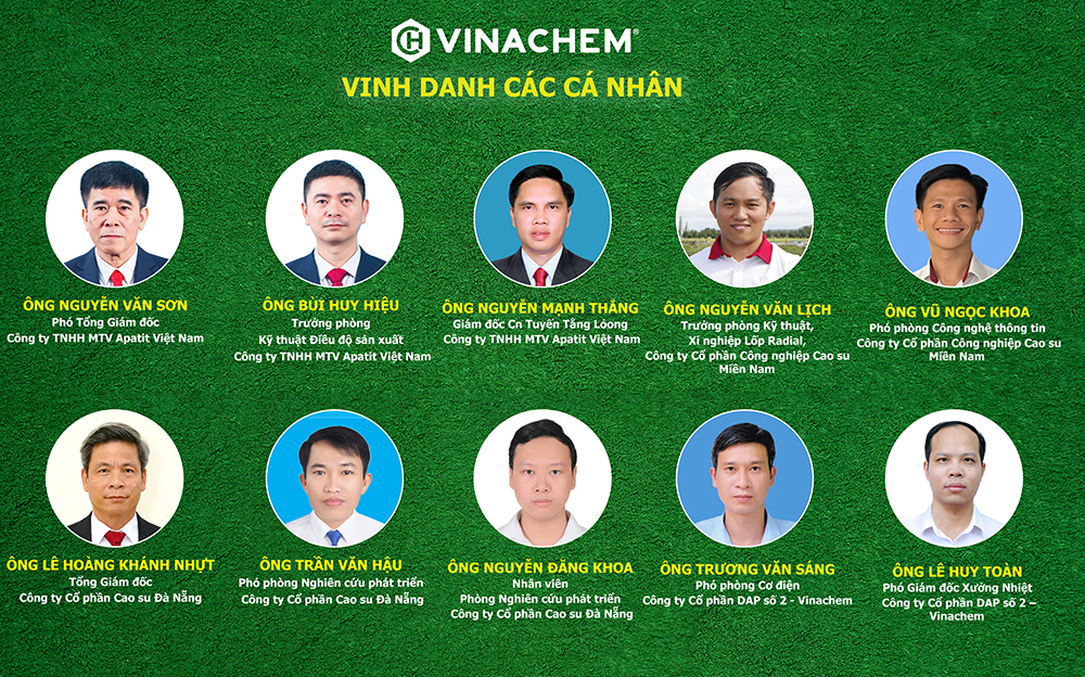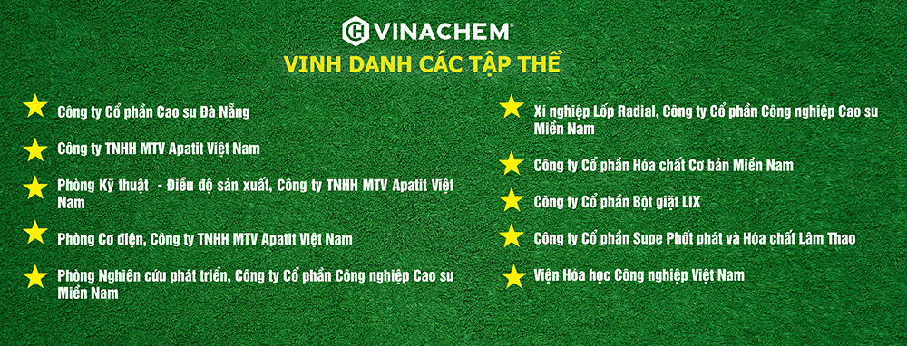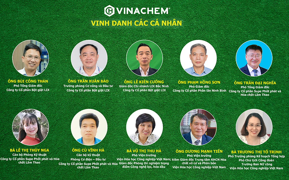 Tại Hội nghị Tổng kết hoạt động khoa học – công nghệ, đổi mới sáng tạo và chuyển đổi số giai đoạn 2021–2025, định hướng giai đoạn 2026–2030, Tập đoàn Hóa chất Việt Nam (Vinachem) đã tổ chức lễ vinh danh và trao khen thưởng cho các tập thể, cá nhân có thành tích xuất sắc, góp phần thúc đẩy ứng dụng khoa học công nghệ, đổi mới sáng tạo trong sản xuất, kinh doanh và quản trị doanh nghiệp.