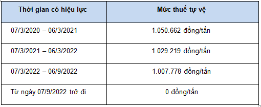 Căn cứ quy định của Luật Quản lý ngoại thương, sau khi có yêu cầu rà soát của ngành sản xuất trong nước, Bộ Công Thương đã phối hợp với các đơn vị liên quan tiến hành rà soát và đánh giá tác động của hàng hóa nhập khẩu vào Việt Nam, tình hình hoạt động sản xuất kinh doanh của ngành sản xuất trong nước, những điều chỉnh của ngành sản xuất trong nước kể từ khi biện pháp tự vệ được áp dụng, khả năng ngành sản xuất trong nước bị thiệt hại nghiêm trọng hoặc đe dọa thiệt hại nghiêm trọng nếu chấm dứt việc áp dụng biện pháp tự vệ, tác động của thuế tự vệ đối với các ngành liên quan.