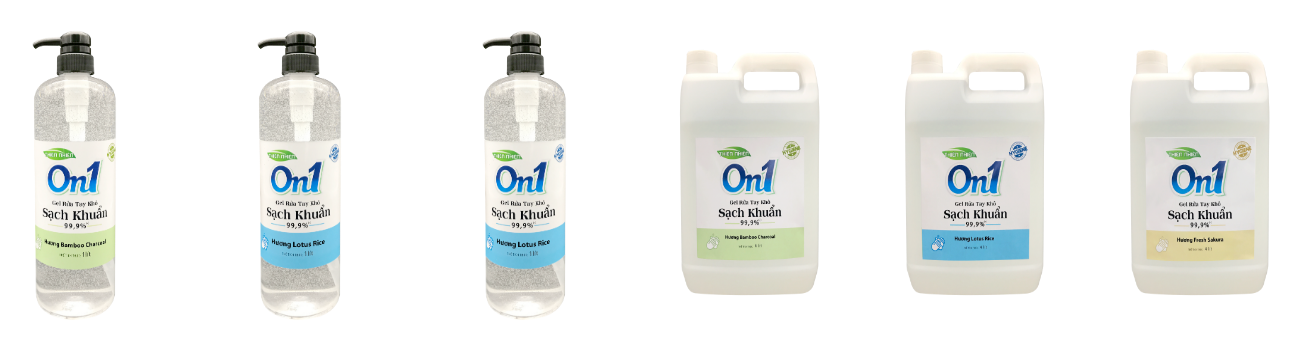 Gel rửa tay khô On1 có khả năng làm sạch khuẩn vượt trội lên tới 99,9%. Sản phẩm dạng gel nên đậm đặc và tiết kiệm hơn so với nước rửa tay dạng dung dịch thông thường. Gel rửa tay khô On1 được đóng trong các chai 100ml, 250ml, 500ml, 1L, 4L để khách khách hàng dễ dàng lựa chọn. Với ba mùi hương dịu nhẹ là Lotus Rice, Fresh Sakura và Bamboo Charcoal, Gel rửa tay khô On1 tạo cảm giác dễ chịu khi sử dụng.